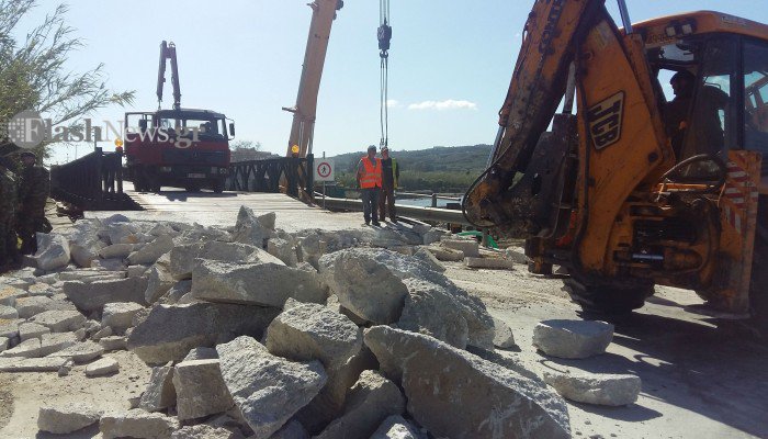 Ξεκίνησαν σήμερα το πρωί οι εργασίες αποξήλωσης της στρατιωτικής γέφυρας που είχε τοποθετηθεί στην γέφυρα του Πλατανιά στον Ιάρδανο ποταμό, στην Παλαιά Εθνική Οδό Χανίων - Κισσάμου.