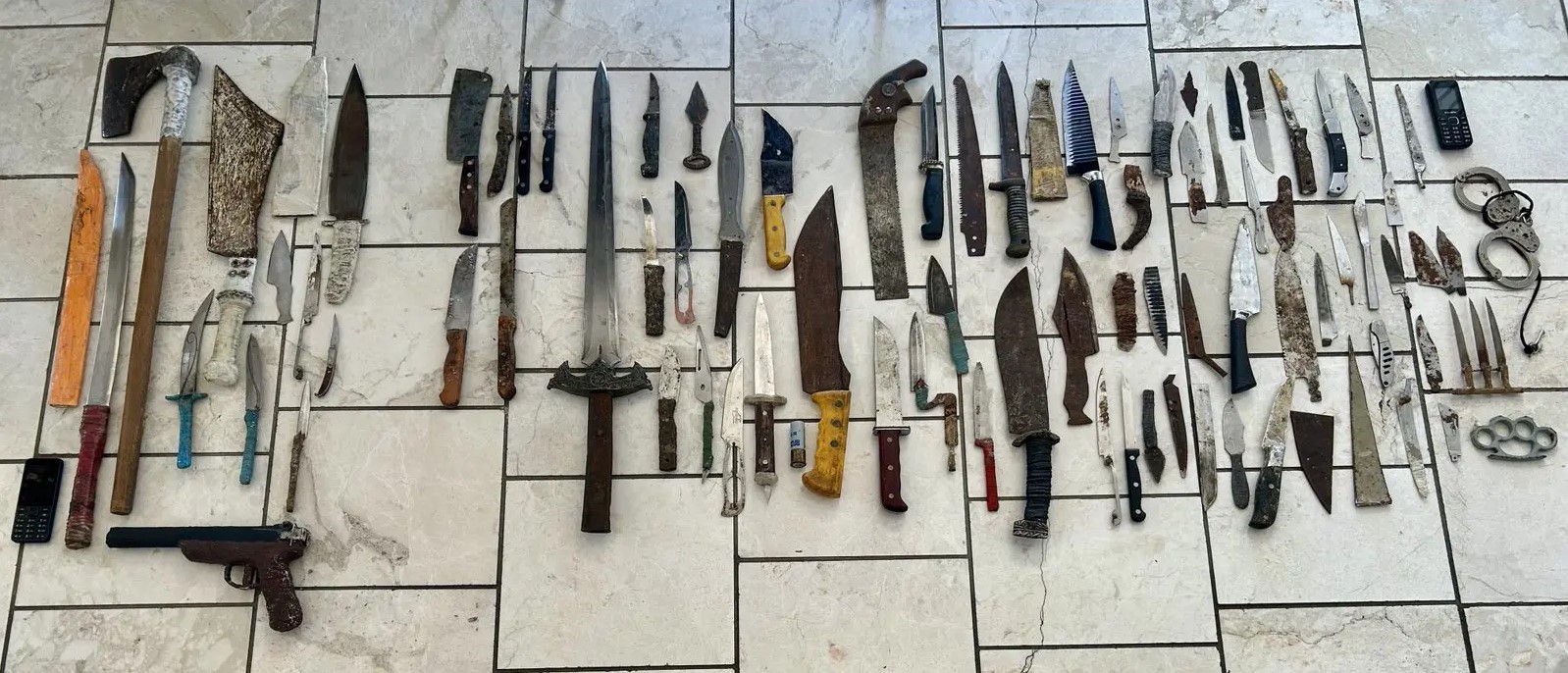 - πληθώρα μαχαιριών, σπαθιών και ξιφιδίων (ορισμένων εξ αυτών αυτοσχέδιων) – συνολικά (76) τον αριθμό,