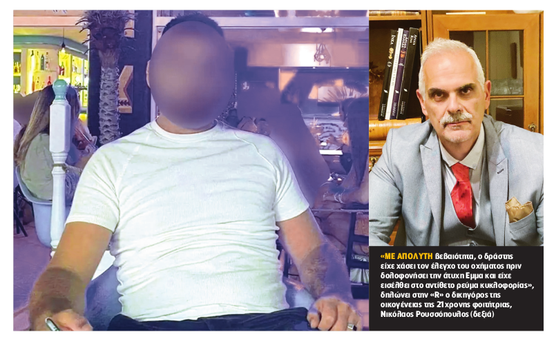 «Με απόλυτη βεβαιότητα, ο δράστης είχε χάσει τον έλεγχο του οχήματος πριν δολοφονήσει την άτυχη Εμμα και είχε εισέλθει στο αντίθετο ρεύμα κυκλοφορίας. Σε καμία περίπτωση δεν ισχύουν αυτά τα οποία ισχυρίστηκε ο δράστης, ότι δηλαδή πετάχτηκε απότομα μπροστά του, καθώς επίσης υπάρχουν και μαρτυρίες που επιβεβαιώνουν τα ανωτέρω. Οπως επίσης υπάρχει και μαρτυρία από αυτόπτη μάρτυρα ότι χτύπησε την άτυχη Εμμα ο δράστης και δεύτερη φορά με το αυτοκίνητο. Η συμπεριφορά του δεν είναι μόνο εγκληματική, είναι και δολοφονική και δεν έχει επιδείξει μέχρι και σήμερα κανένα ίχνος μεταμέλειας», δηλώνει στην «R» ο δικηγόρος της οικογένειας της 21χρονης φοιτήτριας, Νικόλαος Ρουσσόπουλος.