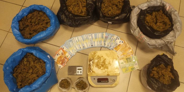 Στη συνέχεια πραγματοποιήθηκε έρευνα στην οικία του ημεδαπού, που χρησιμοποιούσε για την αποθήκευση των ναρκωτικών ουσιών (καβάτζα) σε περιοχή του Δήμου Χερσονήσου, όπου βρέθηκαν και κατασχέθηκαν συνολικά 5.322 γραμμάρια κάνναβης, δύο ηλεκτρονικές ζυγαριές ακριβείας και το χρηματικό ποσό των 4.170 ευρώ ως προερχόμενο από διακίνηση ναρκωτικών ουσιών. Η προανάκριση διενεργείται από το Τμήμα Δίωξης Ναρκωτικών της Υποδιεύθυνσης Ασφάλειας Ηρακλείου.