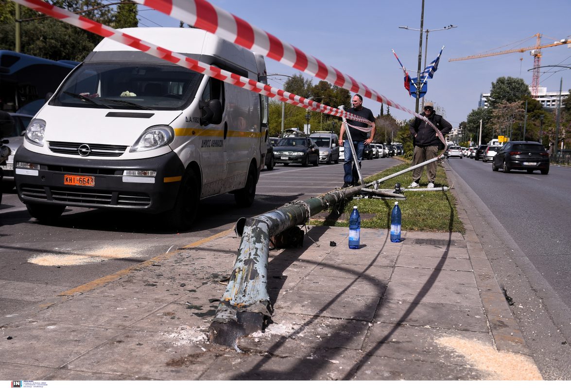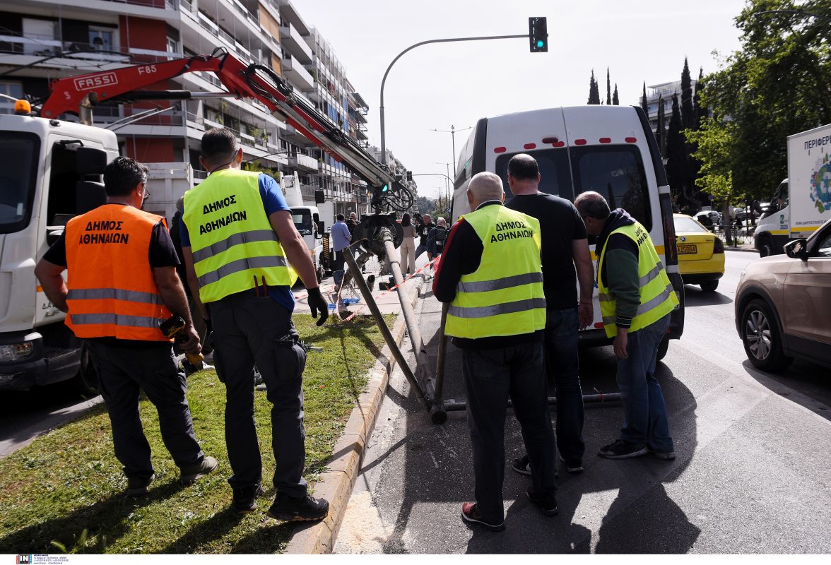Η μεταλλική κολώνα κόπηκε και καταπλάκωσε δύο γυναίκες που περίμεναν να περάσουν στην απέναντι πλευρά του δρόμου.