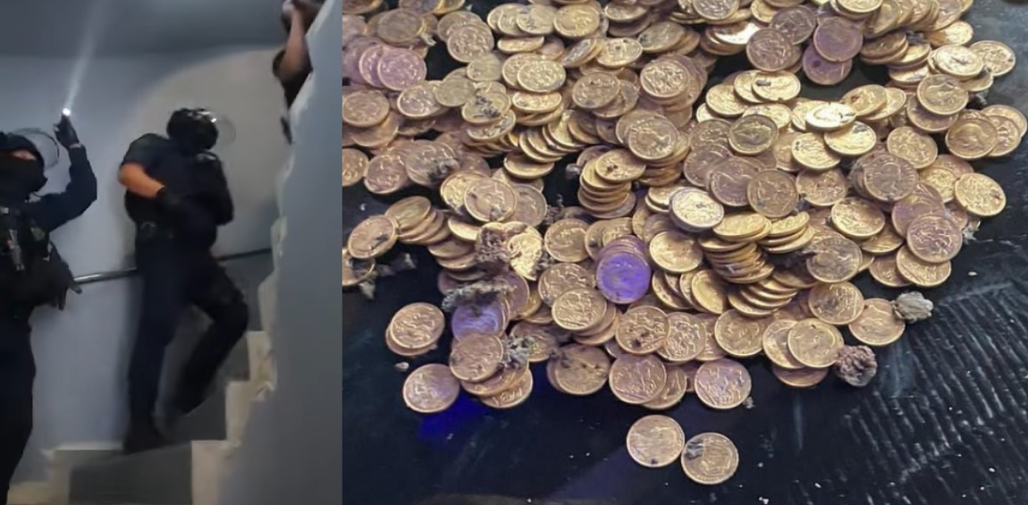 Σύμφωνα με πληροφορίες, βρέθηκαν όπλα, ναρκωτικά και χρυσές λίρες.