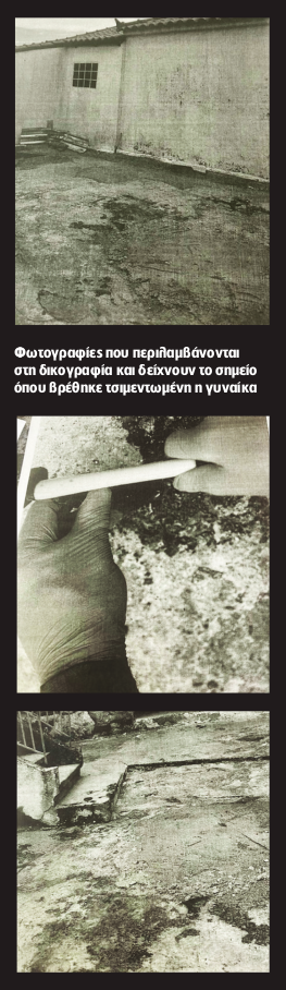 Στο οπτικό υλικό που περιλαμβάνεται στη δικογραφία αποκαλύπτεται ο ανθρώπινος σκελετός που βρέθηκε στην αυλή της κατοικίας στην Ανω Κυπαρισσία. Υστερα από πολύωρη εκταφή, βρέθηκε σε εμβρυακή στάση, στο πλάι αριστερά, ολόκληρη η σορός. Γύρω από αυτή βρέθηκαν ίχνη τσιμέντου. Ο δράστης, αφού σκότωσε τη Μόνικα, την τοποθέτησε χωρίς ρούχα ή παπούτσια στον αυτοσχέδιο τάφο, μήκους μόλις μισού μέτρου. Η σορός, όμως, ταυτοποιήθηκε με τη μέθοδο του DNA, με γενετικό υλικό που έδωσε ο γιος της Μόνικας. Η 42χρονη, μητέρα τριών παιδιών, ζούσε στην Κυπαρισσία εδώ και 20 χρόνια. Τα τελευταία χρόνια διατηρούσε σχέση με τον φερόμενο ως δολοφόνο της, ο οποίος συχνά την κακοποιούσε και αναγκαζόταν να ζητήσει ιατρική βοήθεια. Μέχρι τον περασμένο Φεβρουάριο, οπότε και χάθηκαν τα ίχνη της.