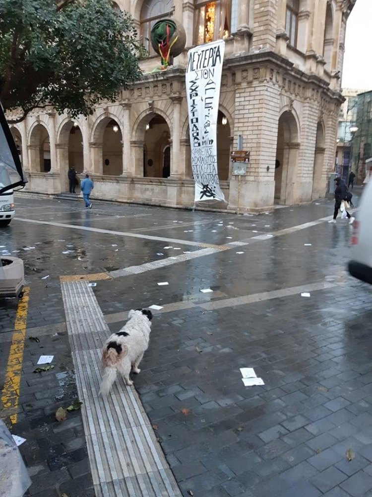 Ομάδα αντιεξουσιαστών εισέβαλε νωρίς το πρωί στο Δημαρχείο Ηρακλείου, την Ενετική Λότζια.