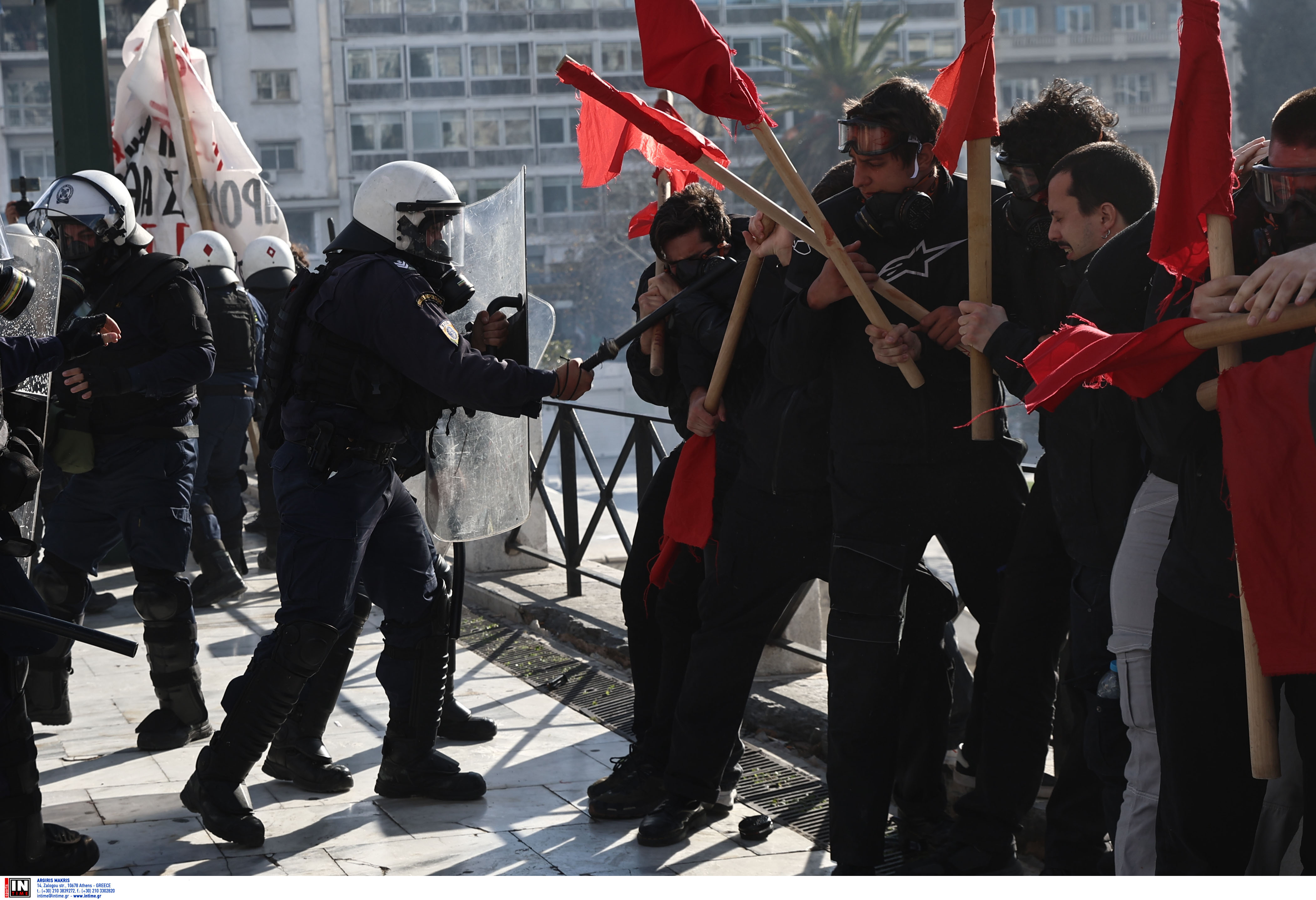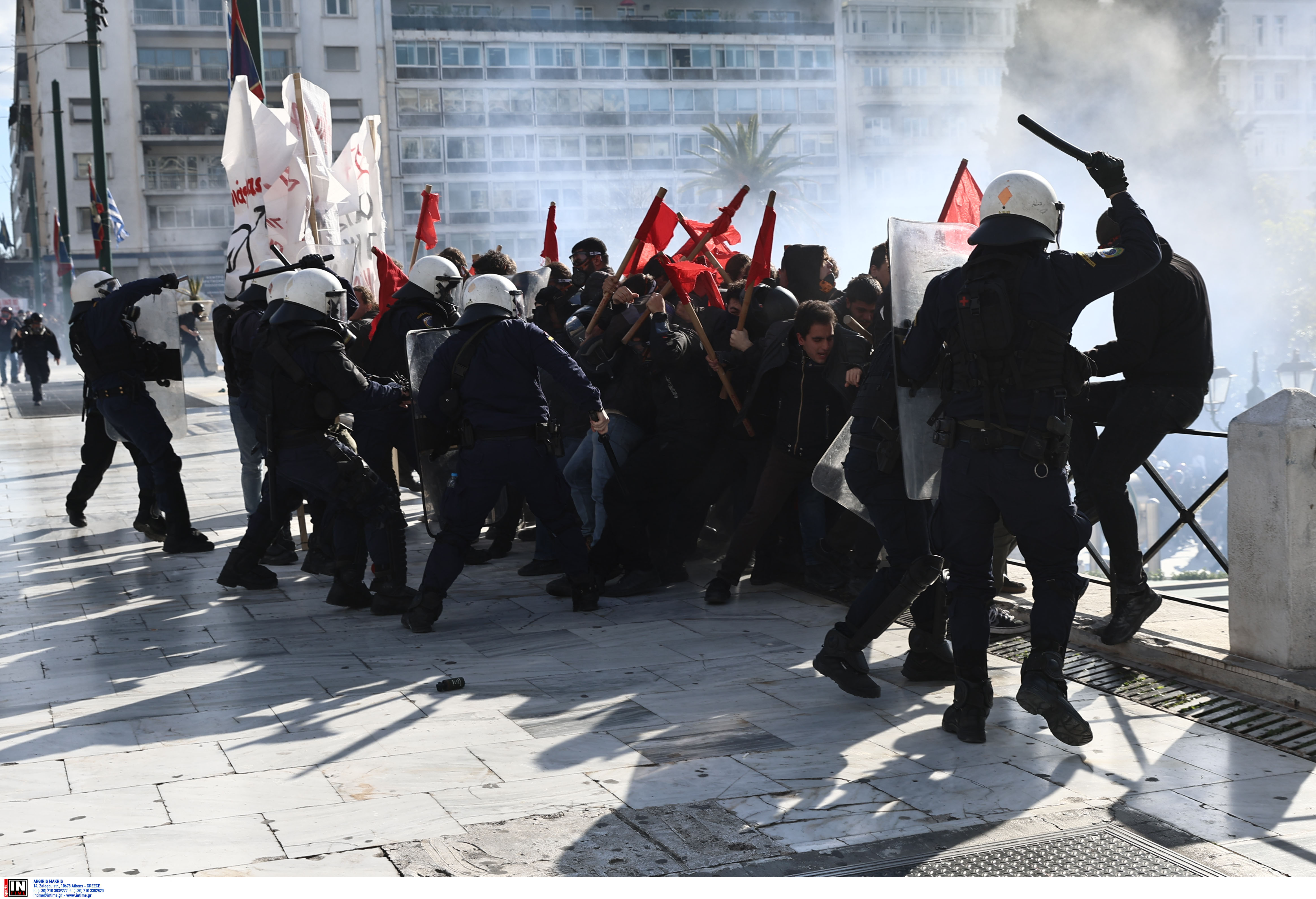 Επεισόδια μεταξύ διαδηλωτών και αστυνομικών σημειώθηκαν νωρίτερα στην πλατεία Συντάγματος κατά την διάρκεια του εκπαιδευτικού συλλαλητηρίου.
