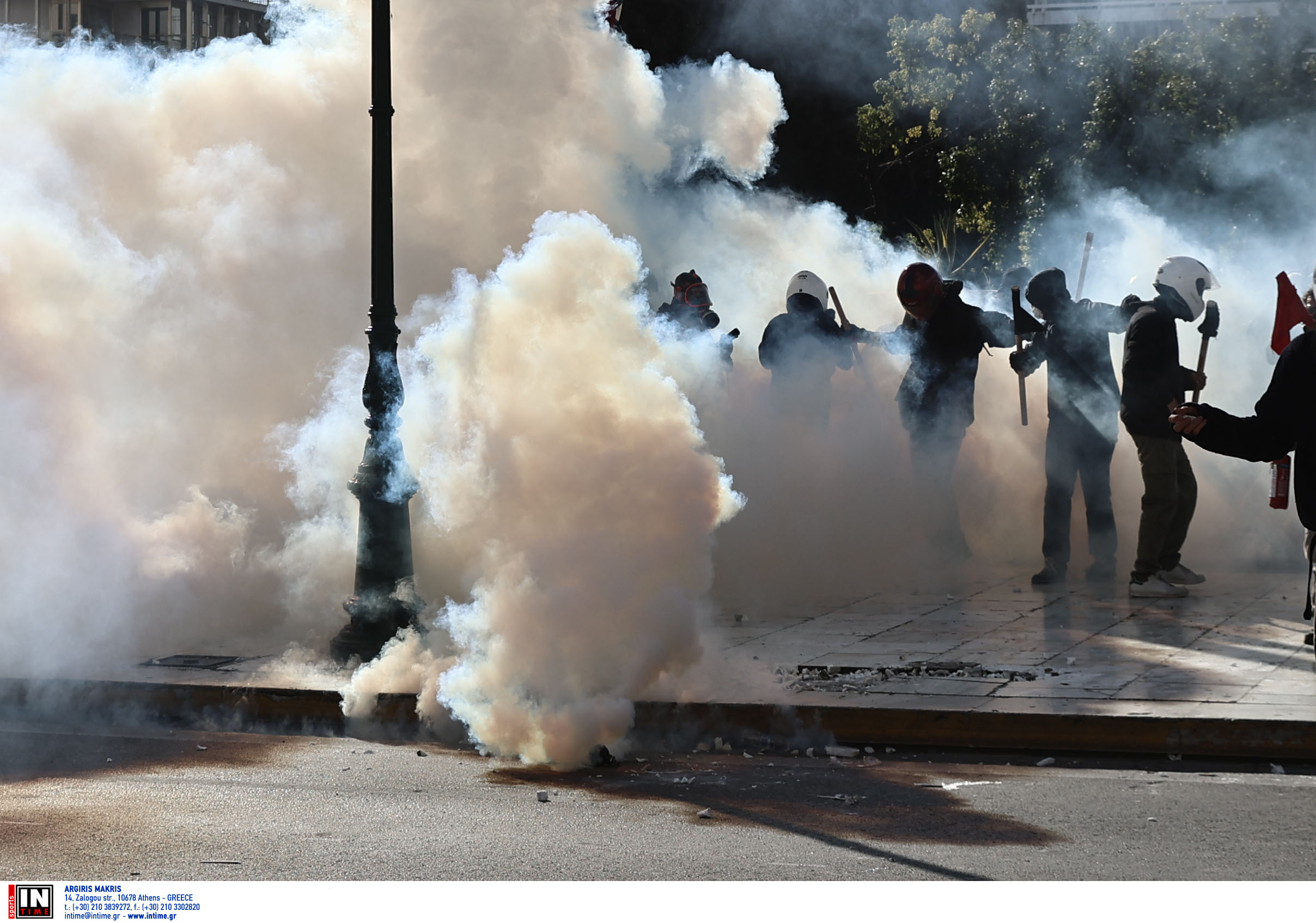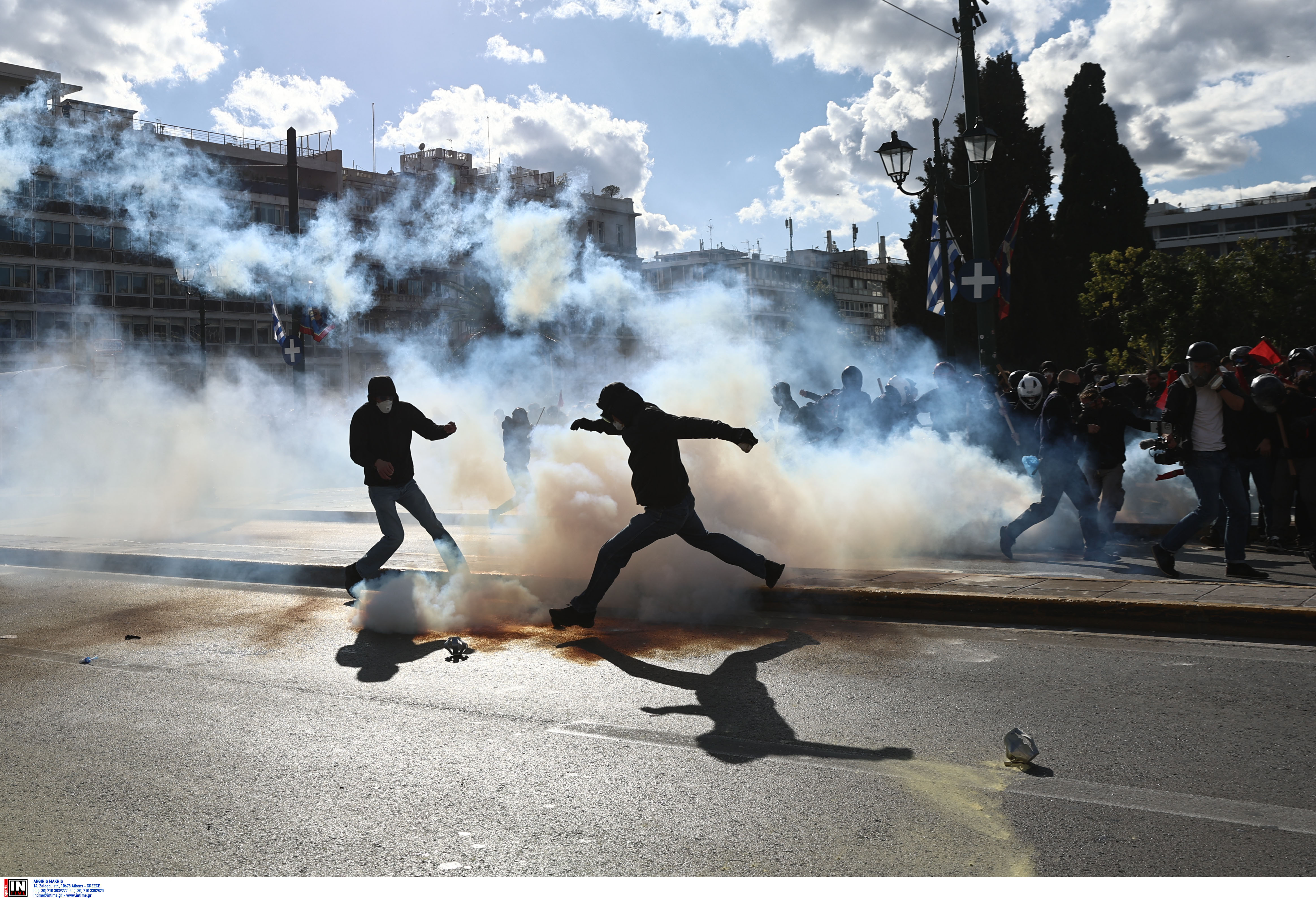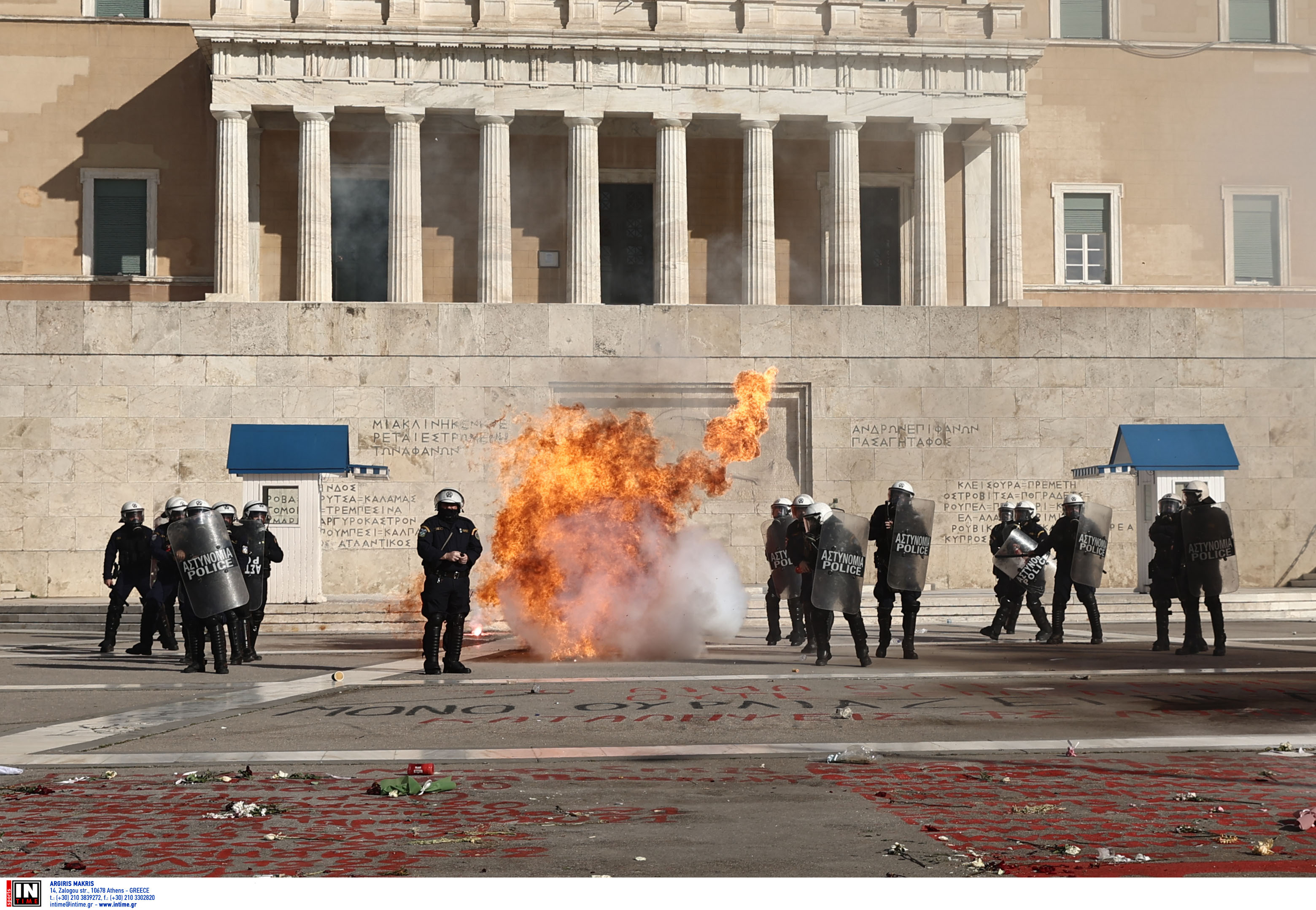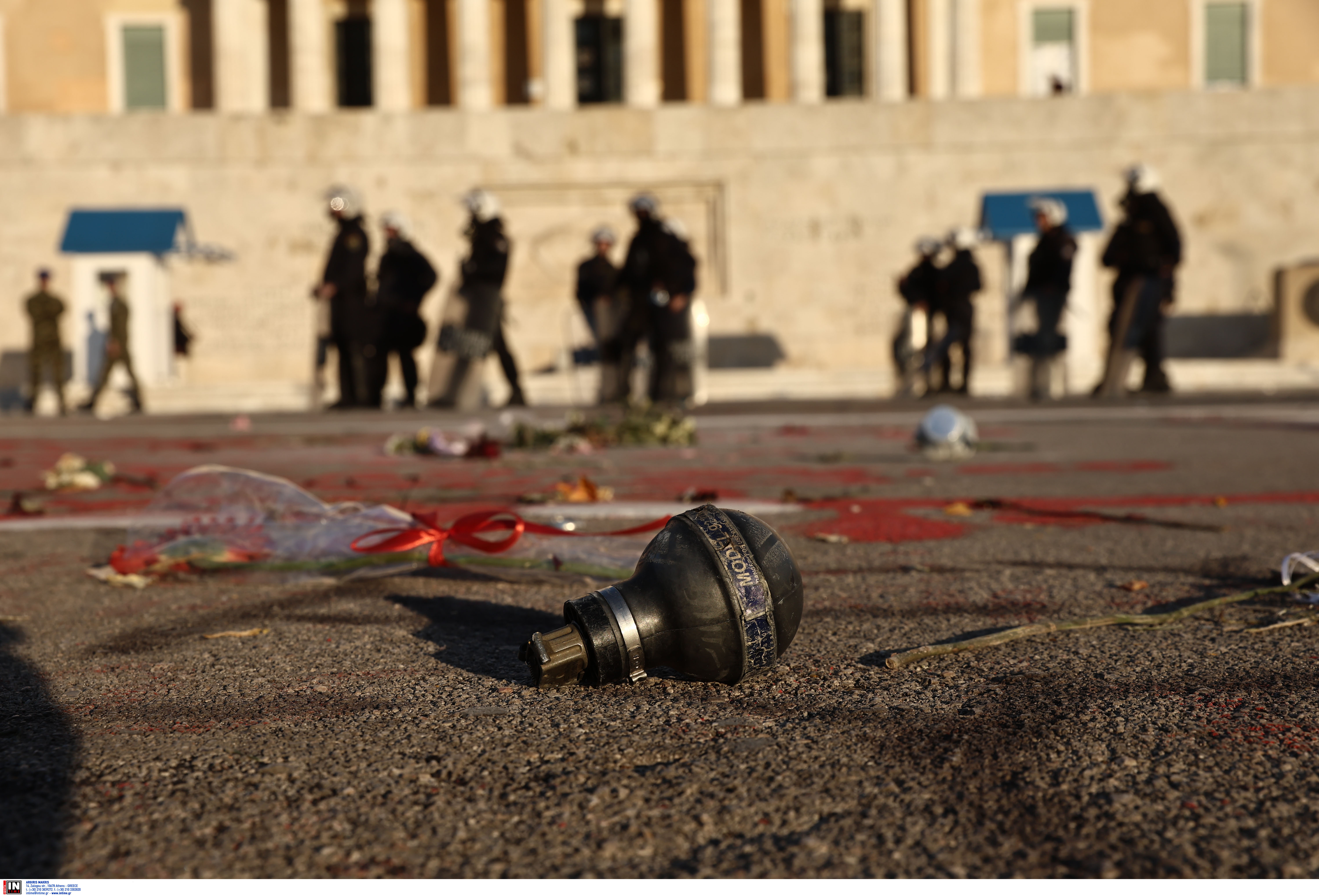 Ειδικότερα, σύμφωνα με την Αστυνομία, λίγο πριν τις 4 το απόγευμα ομάδα ατόμων επιτέθηκε με βόμβες μολότοφ σε αστυνομικές δυνάμεις που βρίσκονταν μπροστά από το Μνημείο του Άγνωστου Στρατιώτη, με τους αστυνομικούς να προχωρούν σε χρήση χημικών μέσων.