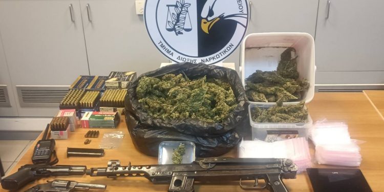 Αστυνομικοί πήγαν στο σπίτι του, που βρίσκεται στο κέντρο του Ηρακλείου, και κατά την έρευνα βρήκαν και κατάσχεσαν 1.294,36 γραμμάρια χασίς, 3 όπλα, 826 σφαίρες, 2 γεμιστήρες, μία ζυγαριά, έναν ασύρματο φορητό πομποδέκτη με μπαταρία, νάιλον συσκευασίες και σπόρους κάνναβης.