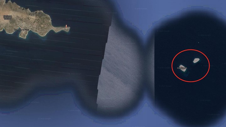 Στην φωτογραφία βλέπετε πώς αποτυπώνεται η ονομασία των βραχονησίδων Ίμια στους χάρτες που χρησιμοποιεί το Marine Traffic.