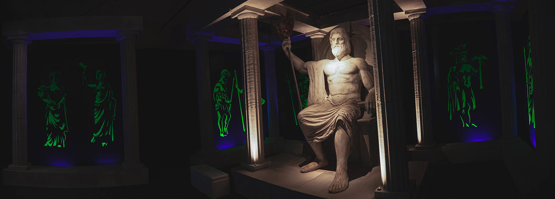 Θαυμάστε από κοντά τα εντυπωσιακά αγάλματα του Άτλαντα, του Ηρακλή, της Αμαζόνας, του Αχιλλέα, του Λεωνίδα, του Μινώταυρου, του Μεγάλου Αλεξάνδρου, του Δία, της θεάς Αθηνάς, αλλά και πελώριες κατασκευές όπως ο Δούρειος Ίππος και η Τριήρης, το πολεμικό πλοίο, με το οποίο η Αθήνα κυρίευσε σε όλη τη Μεσόγειο!