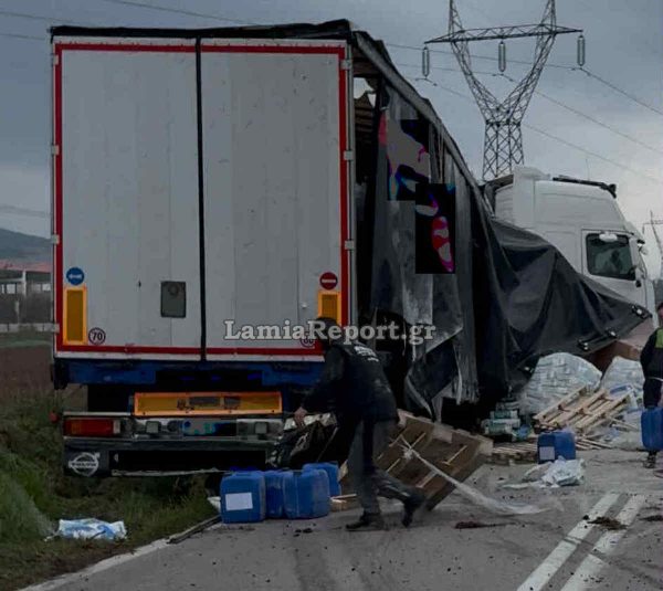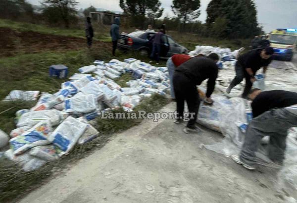 Σύμφωνα με τις πρώτες πληροφορίες του LamiaReport νταλίκα φορτωμένη με τσιμέντα και ορυκτά έλαια, για άγνωστη αιτία, εξετράπη της πορείας της με αποτέλεσμα να γεμίσει ο δρόμος με μέρος του φορτίου της. Αυτοκίνητο που προσπάθησε να αποφύγει τα εμπόδια βγήκε εκτός δρόμου και δύο από τους επιβάτες του μεταξύ αυτών και ένα μικρό παιδί, τραυματίστηκαν, ευτυχώς ελαφρά.