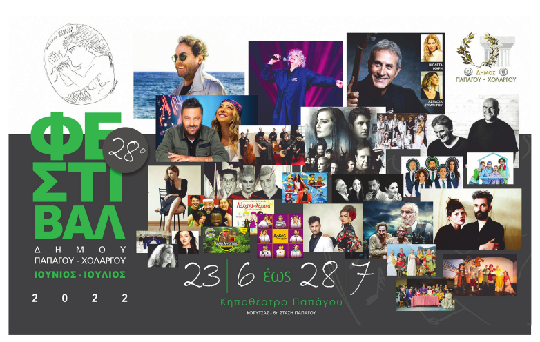 Ο επιτυχημένος θεσμός, που έχει αγαπηθεί από τους φίλους των τεχνών από όλο το Λεκανοπέδιο της Αττικής, ανοίγει αυλαία την Πέμπτη 23 Ιουνίου 2022, στο Κηποθέατρο Παπάγου. Στο α' μέρος του 28ου Φεστιβάλ Παπάγου-Χολαργού, το οποίο θα διαρκέσει έως τις 28 Ιουλίου, θα παρουσιαστούν οκτώ συναυλίες, 15 θεατρικές παραστάσεις και πέντε παιδικές παραστάσεις. Αξίζει να σημειωθεί ότι ο δήμος ξεκινά φέτος μια νέα πρωτοβουλία που έχει ιδιαίτερο ενδιαφέρον και απευθύνεται σε νέους δημότες και κατοίκους 16 έως 30 ετών. Πρόκειται για την «κάρτα νέων», οι κάτοχοι της οποίας θα παρακολουθούν δωρεάν εκδηλώσεις (θα υπάρξει αναλυτική ανακοίνωση του δήμου για τον τρόπο απόκτησής της).
