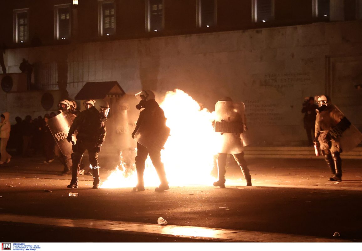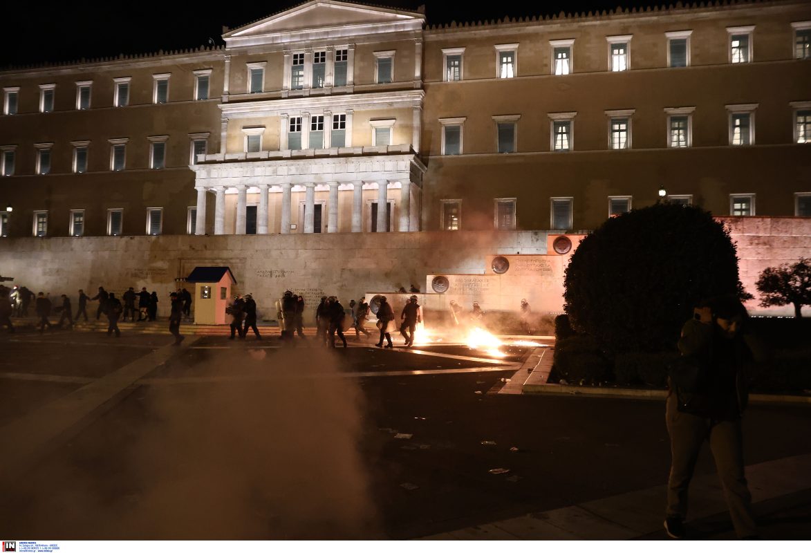Επεισόδια σημειώθηκαν στην Πλατεία Συντάγματος μετά την συγκέντρωση για το δυστύχημα των Τεμπών.