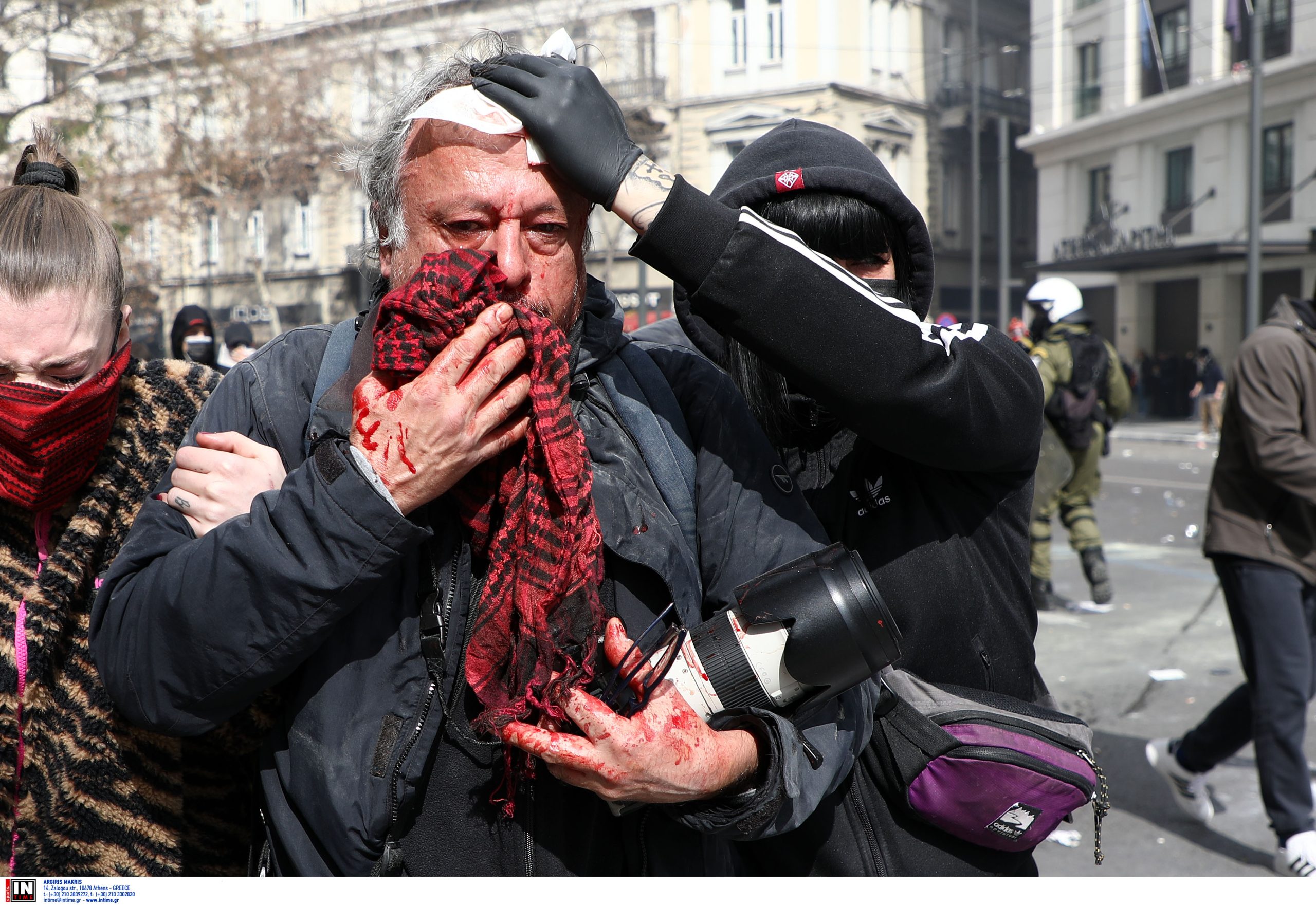 Στο κεφάλι τραυματίστηκε ο φωτορεπόρτερ του ΑΠΕ-ΜΠΕ Ορέστης Παναγιώτου από χειροβομβίδα κρότου λάμψης κατά την διάρκεια των επεισοδίων στο Σύνταγμα.