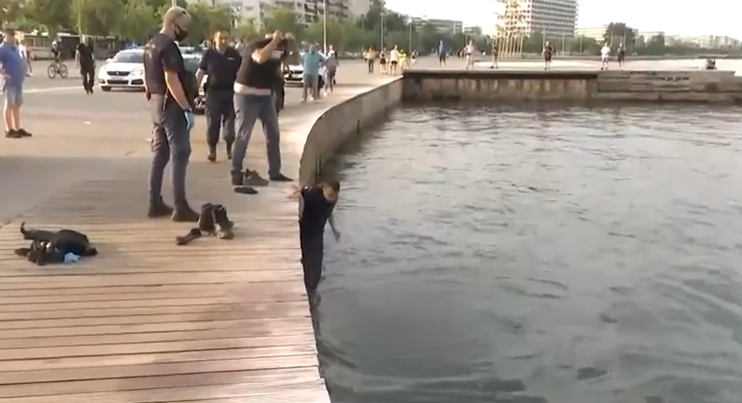 Επεισοδιακή σύλληψη στη Θεσσαλονίκη: Άνδρας έπεσε στον Θερμαϊκό με τις χειροπέδες -Βίντεο
