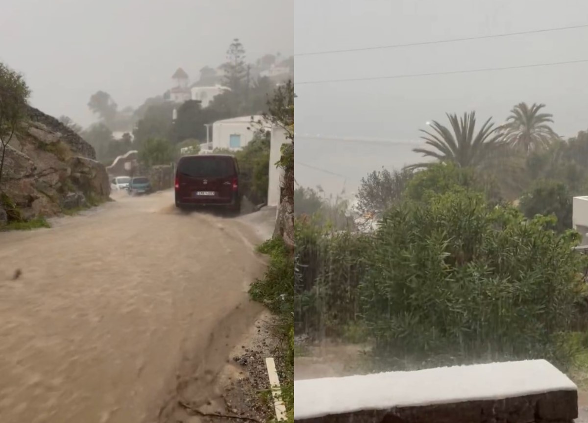 Σε συνέχεια της επέλασης της κακοκαιρίας στις Κυκλάδες εκδόθηκε προειδοποιητικό μήνυμα 112 και στη Μύκονο.