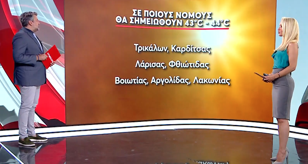 Στις ηπειρωτικες περιοχές αναμένονται θερμοκρασίες 40-42°C και τοπικά 43-44°C.