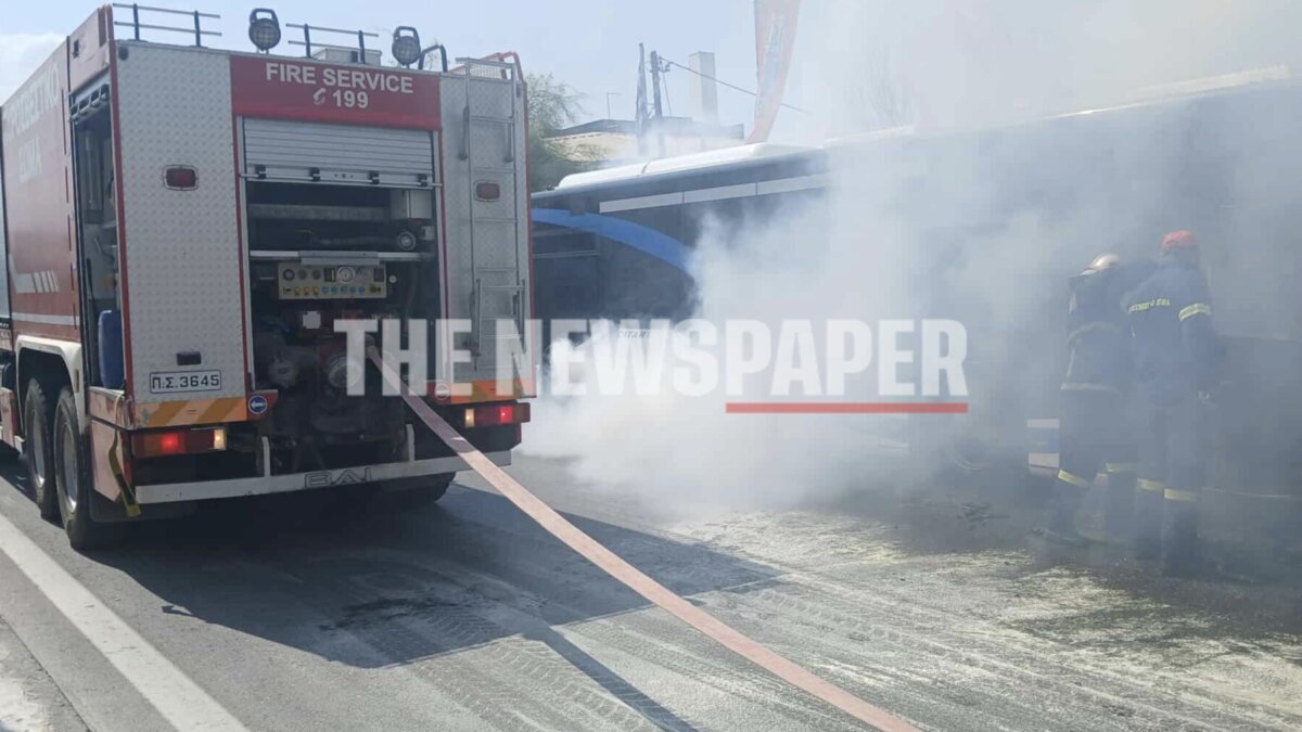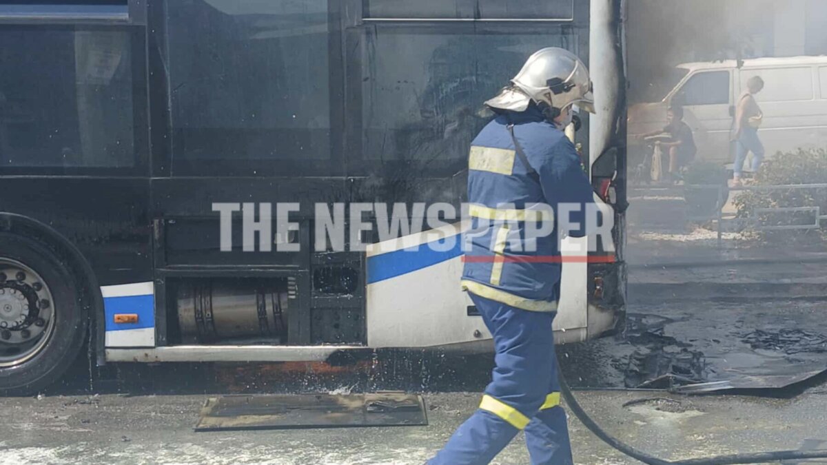 Φωτιά σε αστικό λεωφορείο στο κέντρο του Βόλου – Δείτε εικόνες