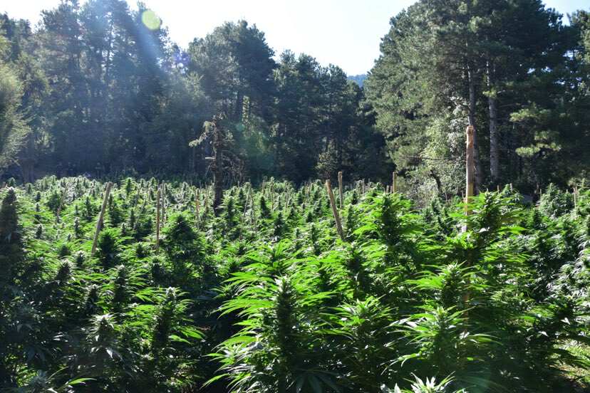 Στο πλαίσιο δράσεων για την καταπολέμηση της καλλιέργειας δενδρυλλίων κάνναβης και κατόπιν αξιολόγησης στοιχείων, εντοπίσθηκε σε δύσβατη δασική περιοχή του δήμου Ξυλοκάστρου-Ευρωστίνης, από αστυνομικούς του Τμήματος Δίωξης και Εξιχνίασης Εγκλημάτων Κορίνθου με τη συνδρομή αστυνομικών της Ομάδας Πρόληψης και Καταστολής του Εγκλήματος (Ο.Π.Κ.Ε.) Κορινθίας, της Ειδικής Κατασταλτικής Αντιτρομοκρατικής Μονάδας (Ε.Κ.Α.Μ.) καθώς και του Αστυνομικού Τμήματος Σικυωνίων, φυτεία δενδρυλλίων κάνναβης.