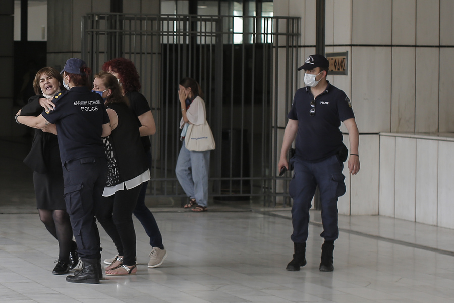 Η αυλαία της πολύκροτης υπόθεσης έπεσε εν μέσω συνθημάτων με κυρίαρχο το “Καμία άλλη δολοφονημένη, ποτέ μην ξεχαστεί τι κάναν στην Ελένη” το οποίο φώναξε κλαίγοντας και με σφιγμένη την γροθιά της, η μητέρα της Ελένης Τοπαλούδη, καθώς αποχωρούσε από το δικαστήριο υποβασταζόμενη.