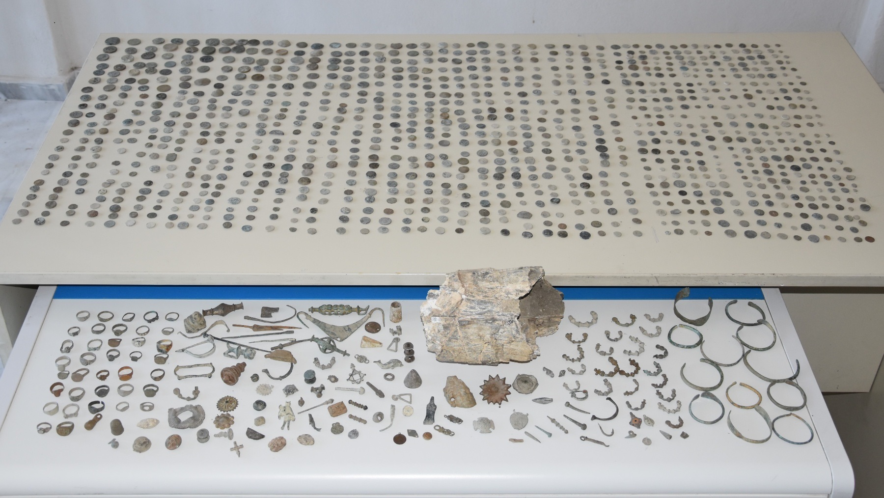 Μεταξύ άλλων βρέθηκαν και κατασχέθηκαν ένα απολίθωμα λειψάνου προβοσκιδωτού ζώου, εκτιμώμενης ηλικίας περίπου τριών εκατομμυρίων ετών, 1.096 αρχαία νομίσματα διαφόρων μεγεθών, 49 αρχαία κοσμήματα, 123 προσαρτήματα σκευών συμποσίου και ενδυμάτων ιστορικής και αρχαιολογικής.