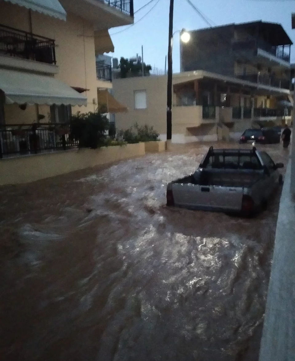 Η ισχυρή καταιγίδα είχε ως αποτέλεσμα να πλημμυρίσουν δρόμοι, σπίτια και ξενοδοχεία και παρασύρθηκαν οχήματα, όπως αναφέρει το KavalaNews.gr
