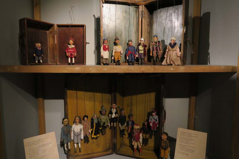 Κούκλες από την Αφρική, Κίνα, Ινδονησία, Μιανμάρ, Ινδία, Ελβετία, Ιταλία, Βουλγαρία, Τσεχία είτε μεμονωμένες, είτε με όλους τους ήρωες από παραστάσεις που έπαιξαν. Με ακουστικά μπορεί κανείς να ακούσει και την αφήγηση των παραμυθιών. Επίσης υπάρχουν φιγούρες Καραγκιόζη και θέατρο σκιών από τη Μαλαισία και την Ινδονησία.