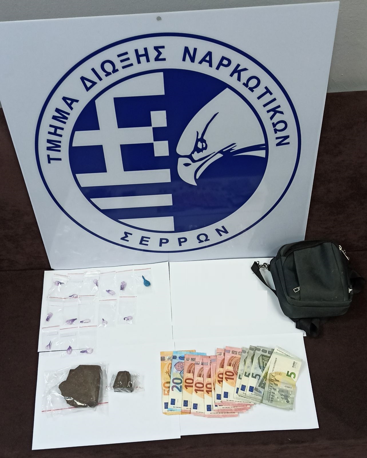 Αστυνομικοί του Τμήματος Δίωξης Ναρκωτικών της Υποδιεύθυνσης Ασφάλειας Σερρών και της Ομάδας ΔΙΑΣ της Διεύθυνσης Αστυνομίας Σερρών, εντόπισαν τον 39χρονο, ο οποίος συνελήφθη για κατοχή ναρκωτικών. Στην κατοχή του βρέθηκε επίσης το χρηματικό ποσό των 165 ευρώ.