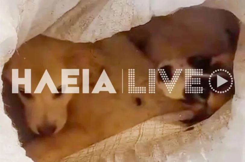 Εγκαταλελειμμένα και δεμένα μέσα σε τσουβάλια βρέθηκαν το μεσημέρι τη Κυριακής πέντε κουτάβια στην Ηλεία.