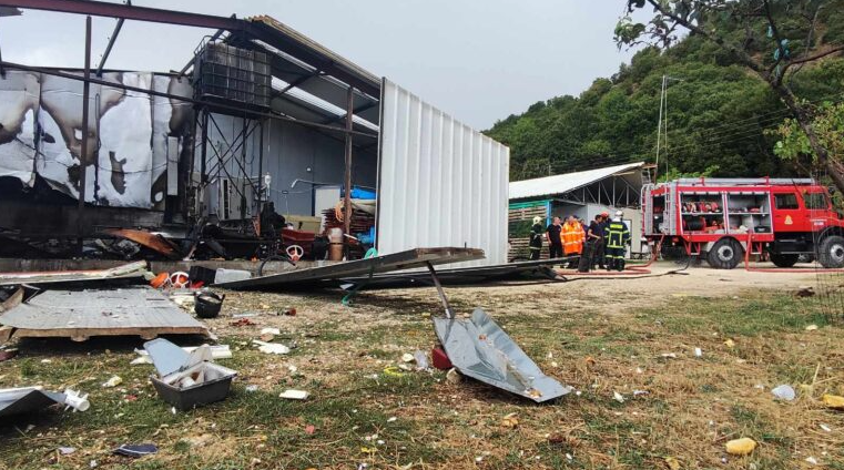 Η έκρηξη ήταν ισχυρή οι λαμαρίνες έχουν εκτοξευθεί γύρω από το πτηνοτροφείο, ενώ πυροσβεστικές δυνάμεις με τρία οχήματα και 12 άνδρες έθεσαν την πυρκαγιά υπό έλεγχο πριν επεκταθεί σε όλο το πτηνοτροφείο.