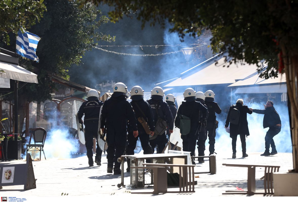 Σημειώθηκαν συμπλοκές νεαρών με την αστυνομία έξω από το αρχαιολογικό μουσείο, στην Αβέρωφ, στην πλατεία 18 Άγγλων, 25ης Αυγούστου, στα Λιοντάρια και στη Δικαιοσύνης.