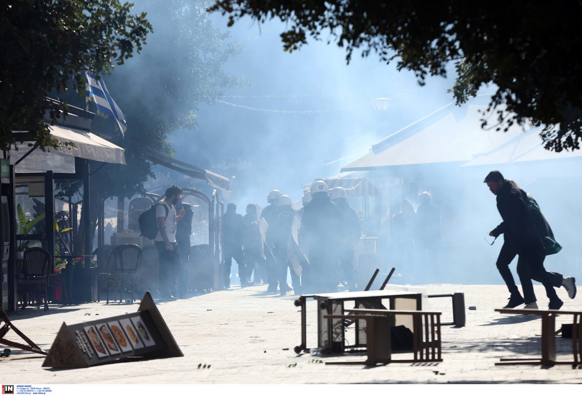 Σημειώθηκαν συμπλοκές νεαρών με την αστυνομία έξω από το αρχαιολογικό μουσείο, στην Αβέρωφ, στην πλατεία 18 Άγγλων, 25ης Αυγούστου, στα Λιοντάρια και στη Δικαιοσύνης.