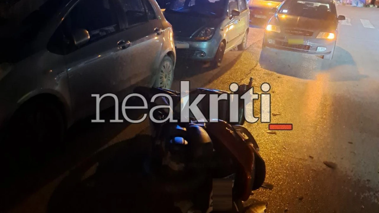 Από τη σφοδρή σύγκρουση, το μηχανάκι εκτοξεύτηκε σε μεγάλη απόσταση, ενώ ο νεαρός οδηγός τραυματίστηκε σοβαρά στο πόδι, σύμφωνα με το neakriti.