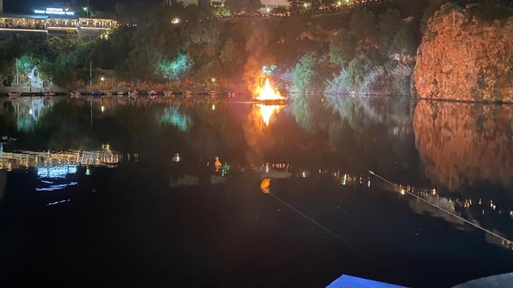 Η σχεδία, με τη βοήθεια κάποιου βαρκάρη μεταφέρεται στο κέντρο της λίμνης και η φωτιά φτάνει από την κορυφή του υψώματος, με τη βοήθεια σχοινιών που επιπλέον κρατούν σταθερή την κατασκευή.