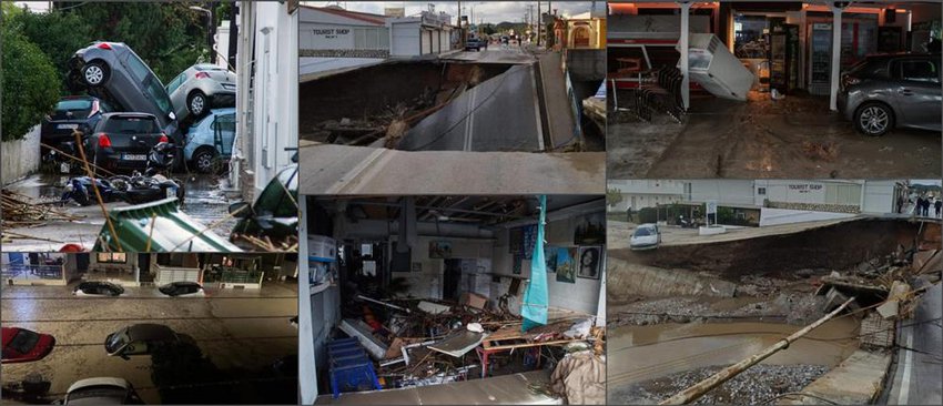 Στο νησί έβρεχε ασταμάτητα πάνω από 16 ώρες. Από την έντονη βροχόπτωση οι ζημιές είναι τεράστιες και στις υποδομές του νησιού με μία γέφυρα να καταρρέει, το οδόστρωμα να υποχωρεί σε αρκετά σημεία, κατολισθήσεις και μεγάλες ζημιές σε ιδιωτικές περιουσίες.