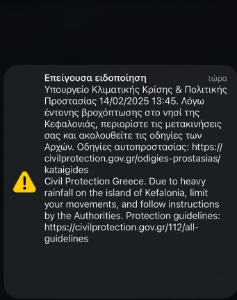 Εντύπωση και προβληματισμό προκαλεί το γεγονός ότι δεν εστάλη μήνυμα προειδοποίησης μέσω του αριθμού έκτακτης ανάγκης 112, παρά την ένταση της κακοκαιρίας και τα σοβαρά προβλήματα που προκάλεσε. Κάτοικοι της περιοχής εξέφρασαν την απορία και την ανησυχία τους για την έλλειψη έγκαιρης ενημέρωσης, τονίζοντας ότι ένα μήνυμα προειδοποίησης θα μπορούσε να συμβάλει στην αποφυγή επικίνδυνων καταστάσεων.