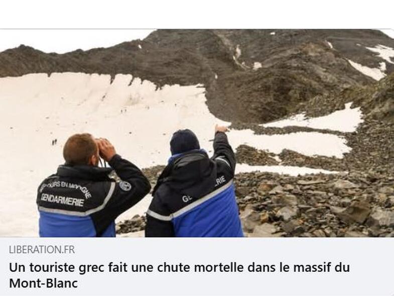 Βρέθηκε νεκρός ακόμη ένας άνθρωπος σε ένα από τα πιο επικίνδυνα σημεία του ορεινού όγκου του Μον Μπλαν. Ένας 33χρονος άνδρας, ελληνικής υπηκοότητας, έχασε τη ζωή του τη Δευτέρα 4 Αυγούστου, έπειτα από πτώση στο άνω τμήμα του διαδρόμου Goûter, όπως ανακοίνωσε η Ορεινή Χωροφυλακή του Chamonix (PGHM) στο Γαλλικό Πρακτορείο Ειδήσεων (AFP), επιβεβαιώνοντας σχετικό ρεπορτάζ του France 3 Auvergne-Rhône-Alpes.