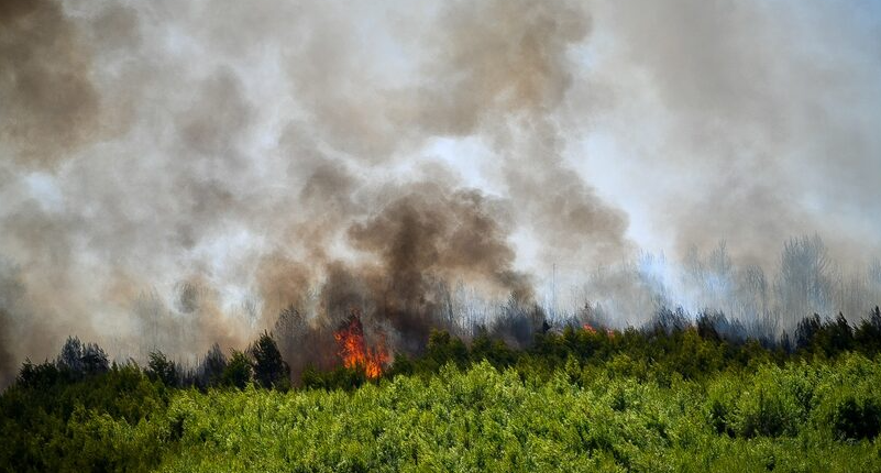 Στην περιοχή πνέουν ισχυροί άνεμοι που καθιστούν δύσκολη την κατάσβεση της φωτιάς.