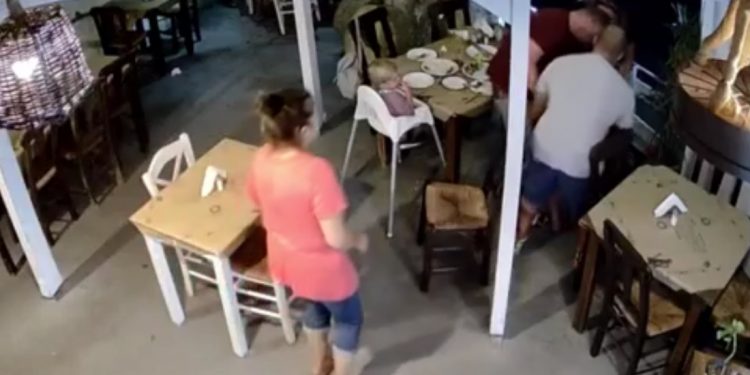 Ο πατέρας σηκώθηκε αμέσως και άρχισε να δίνει τις πρώτες βοήθειες στο παιδί με τον ιδιοκτήτη της ταβέρνας να αναλαμβάνει.