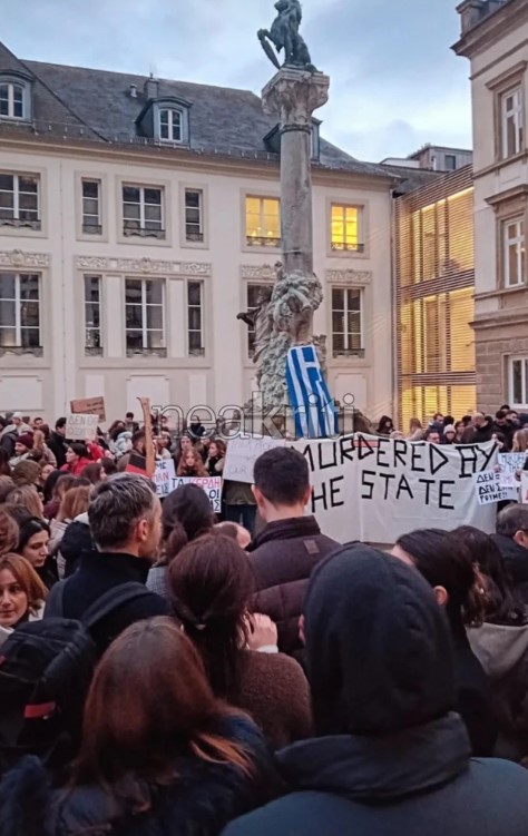 Συγκέντρωση πραγματοποιήθηκε και στο Λουξεμβούργο, με τους συγκεντρωμένους να κρατάνε πλακάτ με μηνύματα στα Γαλλικά, τα Αγγλικά, αλλά και τα Ελληνικά.