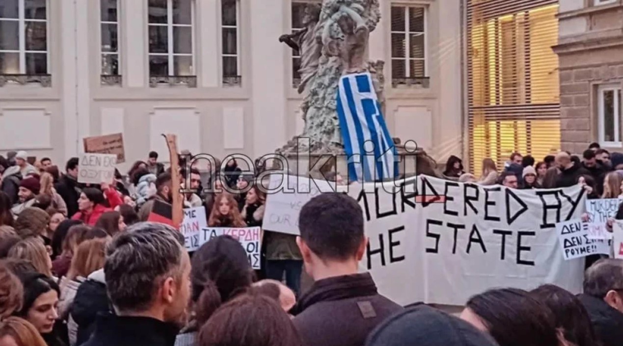 «Κράτος κλειστό» και στις τρεις γλώσσες και «Όλων των θυμάτων γινόμαστε φωνή, το έγκλημα στα Τέμπη δεν θα καλυφθεί» αναγραφόταν μεταξύ άλλων στα πλακάτ και στα πανό που κρατούσαν οι συμμετέχοντες στην συγκέντρωση.