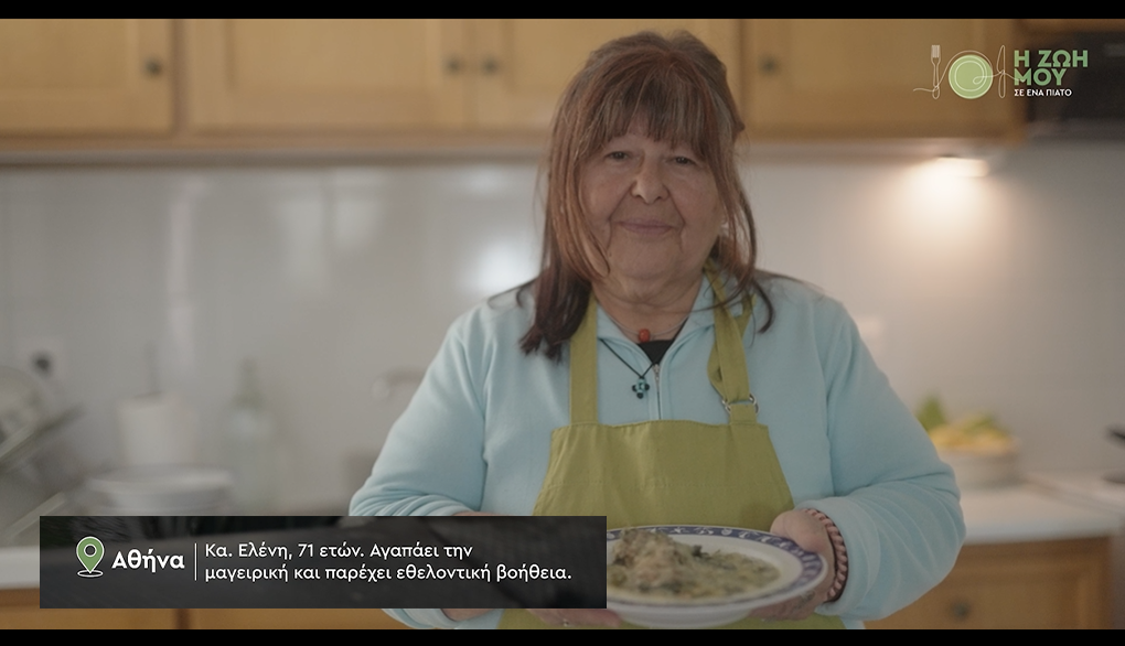 Στη δεύτερη ιστορία, πρωταγωνίστρια είναι η κα Ελένη, 71 ετών από την Αθήνα. Πρόσφατα πλημμύρισε το σπίτι της και βρίσκεται σε διαδικασία μετακόμισης, όμως αυτό δεν αποτέλεσε εμπόδιο για να συνεχίσει να είναι δραστήρια και να προσφέρει εθελοντική εργασία. Της αρέσει πάρα πολύ η μαγειρική και θεωρεί το φαγητό έναν τρόπο να μηδενίσει την απόσταση με τον γιο της που μένει στην Κρήτη, στέλνοντάς του το αγαπημένο του φαγητό, το φρικασέ μαγειρεμένο με αγάπη και μια μυστική οικογενειακή συνταγή.