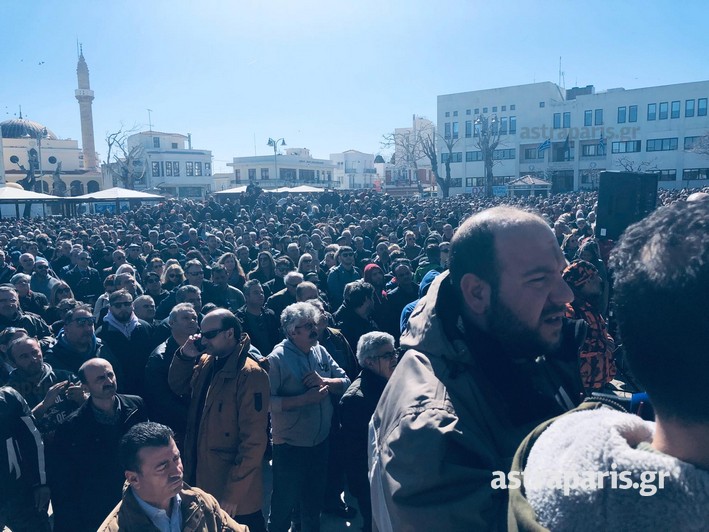 Χιλιάδες κάτοικοι της Χίου έκαναν συγκέντρωση διαμαρτυρίας στην πλατεία Βουνακίου.