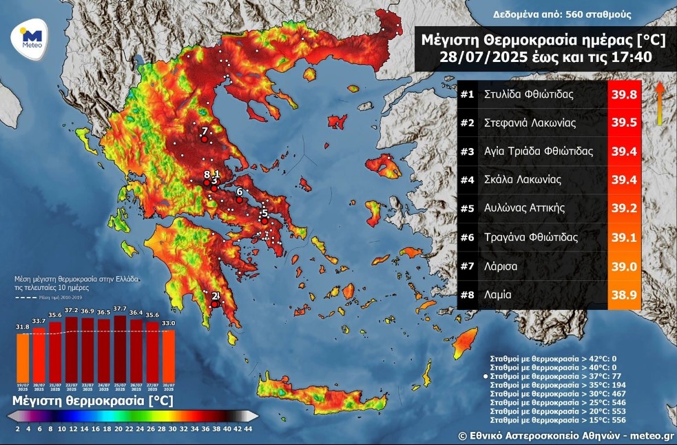 - Στυλίδα Φθιώτιδας – 39,8 βαθμοί Κελσίου