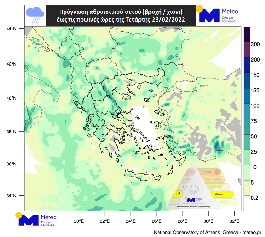 Σύμφωνα με τα τελευταία προγνωστικά δεδομένα του Εθνικού Αστεροσκοπείου Αθηνών/meteo.gr, για το υπόλοιπο της Τρίτης αναμένονται βροχές αλλά και καταιγίδες στο μεγαλύτερο μέρος της χώρας, ενώ υπάρχει πιθανότητα χαλαζοπτώσεων κυρίως στα δυτικά και βόρεια ηπειρωτικά και στο Ιόνιο.