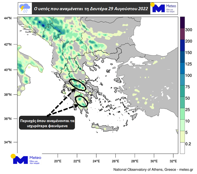 Στα ορεινά της Στερεάς Ελλάδας και της Πελοποννήσου τα φαινόμενα ενδέχεται κατά τόπους να είναι ισχυρά.