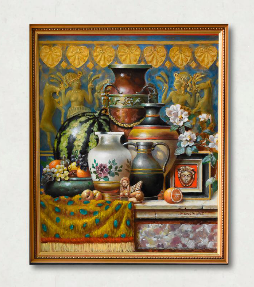 “Ο Θεόδωρος Μανωλίδης είναι βαθιά μεσογειακός καλλιτέχνης. Τα έργα του αντλούν έμπνευση από τους μύθους και τη φύση, διαμορφώνοντας έναν ζωντανό διάλογο ανάμεσα σε εποχές και πολιτισμούς. Μέσα από αγγεία, προσωπεία, κεντήματα και σύμβολα, ανασυνθέτει μια εικαστική γλώσσα που γεφυρώνει το παρελθόν με το παρόν. Τα έργα του διακρίνονται για τη ζωτικότητα, τη μνημειακότητα και την αίσθηση διαχρονίας που αποπνέουν.”