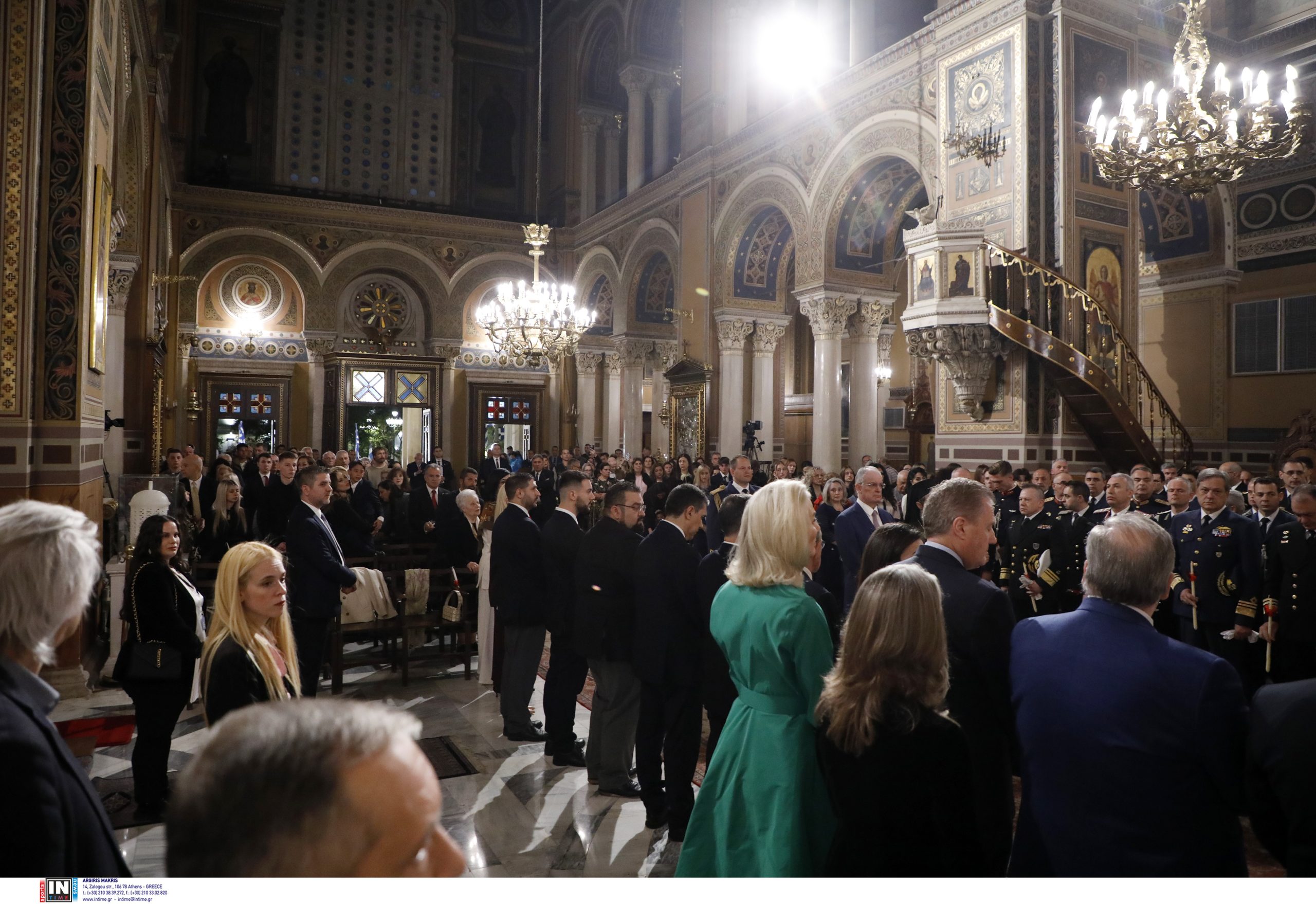 Την κυβέρνηση εκπροσωπεί ο Υπουργός Εξωτερικών Γιώργος Γεραπετρίτης Παρίστανται ο πρόεδρος του ΠΑΣΟΚ-Κίνημα Αλλαγής Νίκος Ανδρουλάκης και ο δήμαρχος Αθηναίων Χάρης Δούκας.
