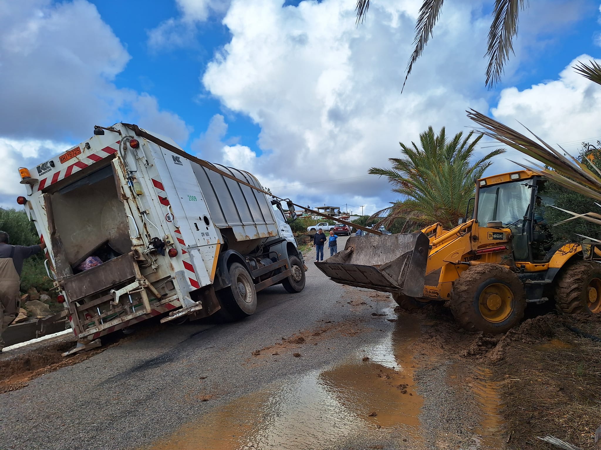 Με την πρώτη βροχή άρχισαν τα προβλήματα στην Κρήτη. Στο Παλαίκαστρο εξετράπη ελαφρώς απορριμματοφόρο του Δήμου Σητείας σε σημείο όμως που εκτελούνταν έργα και υπήρχε στενότητα στον δρόμο καθώς υπήρχε μια μπουλντόζα στην άλλη πλευρά κλείνοντας το πλάτος της οδού.