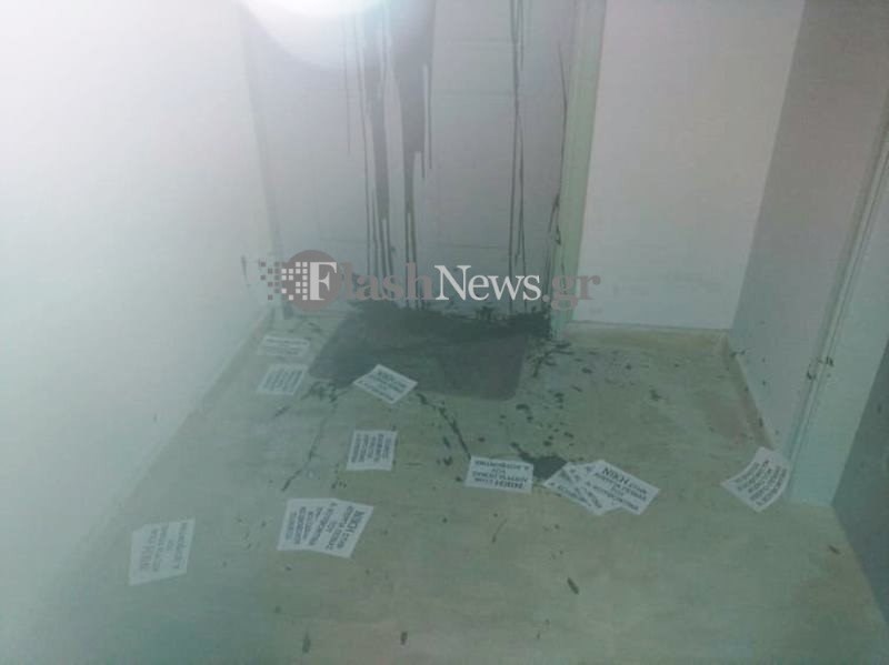 Άγνωστοι κατάφεραν να μπουν στο κτίριο εμπορικού μεγάρου, στον τέταρτο όροφο του οποίου βρίσκονται τα γραφεία της τοπικής οργάνωσης της ΝΔ. Στον τοίχο του διαδρόμου έγραψαν με μαύρη μπογιά τη λέξη «Δολοφόνοι», πέταξαν μπογιά στην πόρτα και τρικάκια με συνθήματα υπέρ. του Δημήτρη Κουφοντίνα.