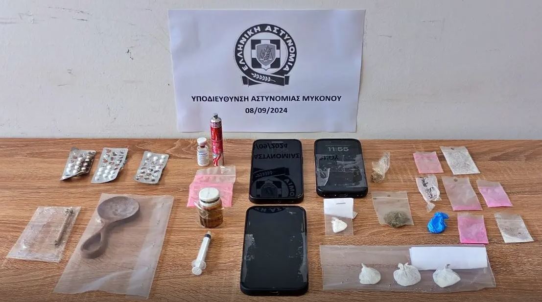Την περασμένη Κυριακή (08/09) στη Μύκονο, αστυνομικοί της Υποδιεύθυνσης Αστυνομίας Μυκόνου σε συνεργασία με το κλιμάκιο της Διεύθυνσης Ασφαλείας Αττικής που διεξάγει ειδικές δράσεις στο νησί, συνέλαβαν έναν 33χρονο αλλοδαπό από τις ΗΠΑ και τρείς Έλληνες, ηλικίας 26, 33 και 43 ετών, σε βάρος των οποίων σχηματίσθηκε δικογραφία κακουργηματικού χαρακτήρα για κατοχή και διακίνηση ναρκωτικών ουσιών.